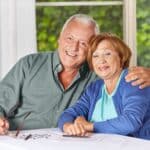 זוג קשישים מחבקים זה את זה בחמימות על ספה בסלון ביתי, מסמל תמיכה משפחתית לניידות נוחה יותר עם תו נכה לרכב.